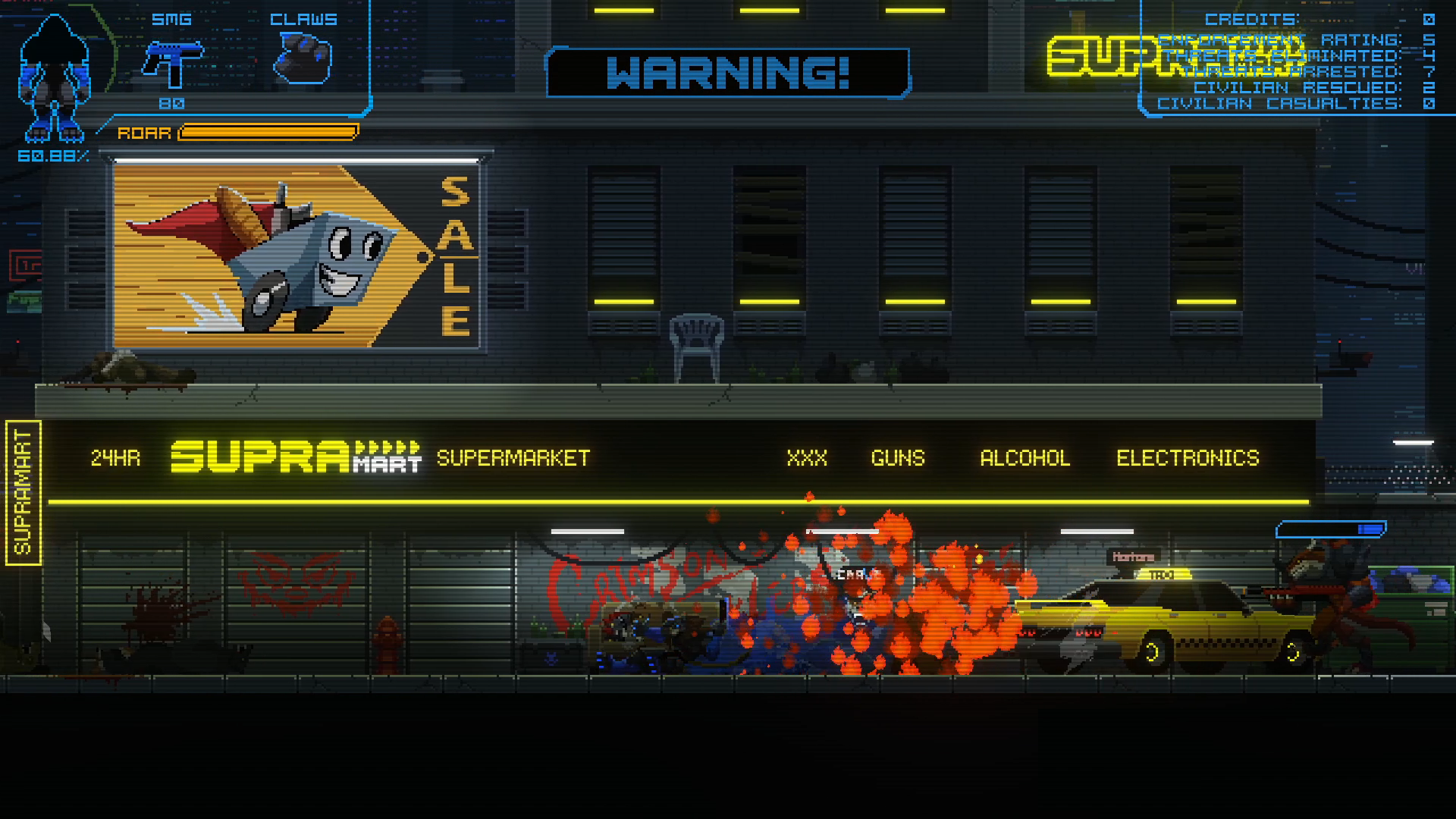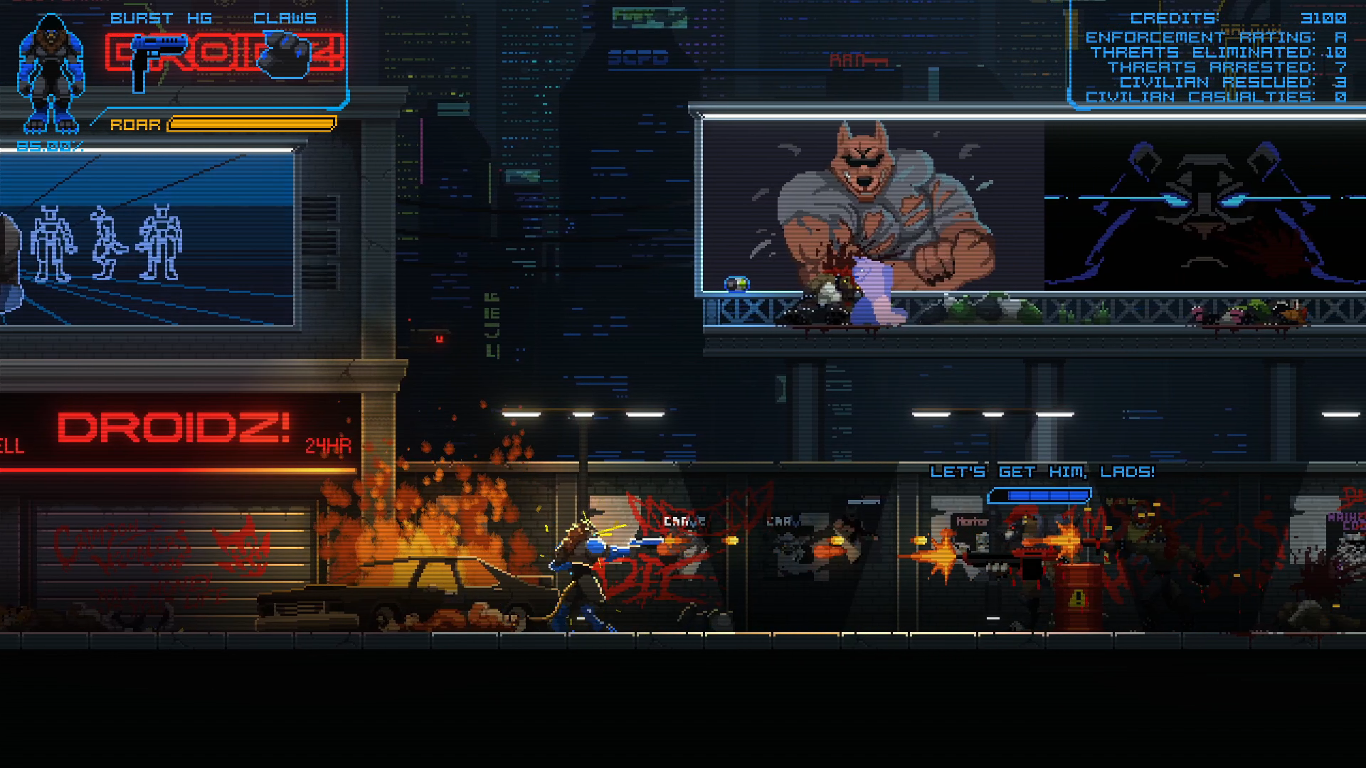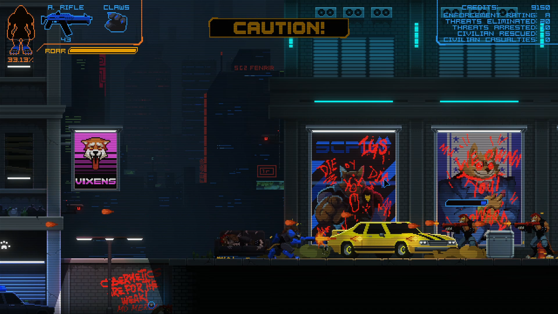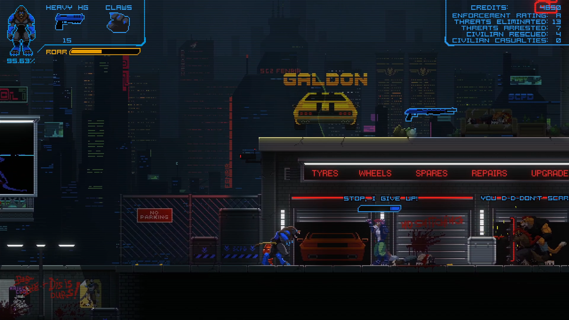 Project Sentinel is a 16-bit inspired 2D pixel-art run-and-gun platformer that blends classic arcade action with satirical dystopian law enforcement. Intimidate suspects into compliance with a cybernetic roar, or embrace the brutal Zero Tolerance Initiative and enforce order through overwhelming firepower.